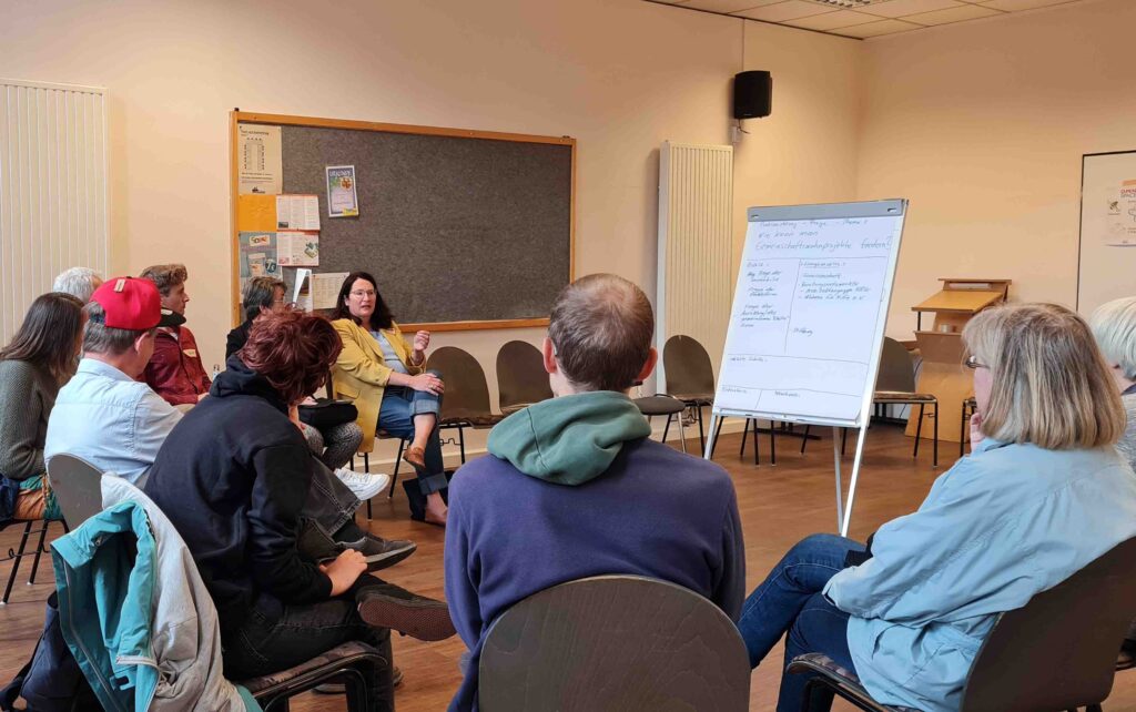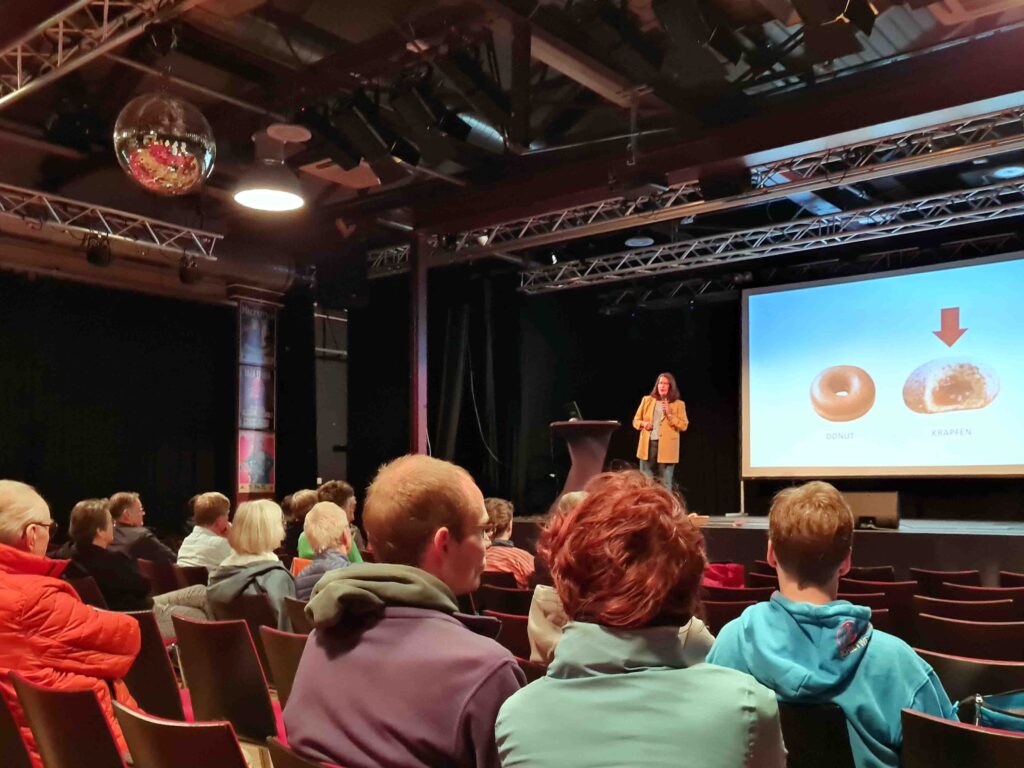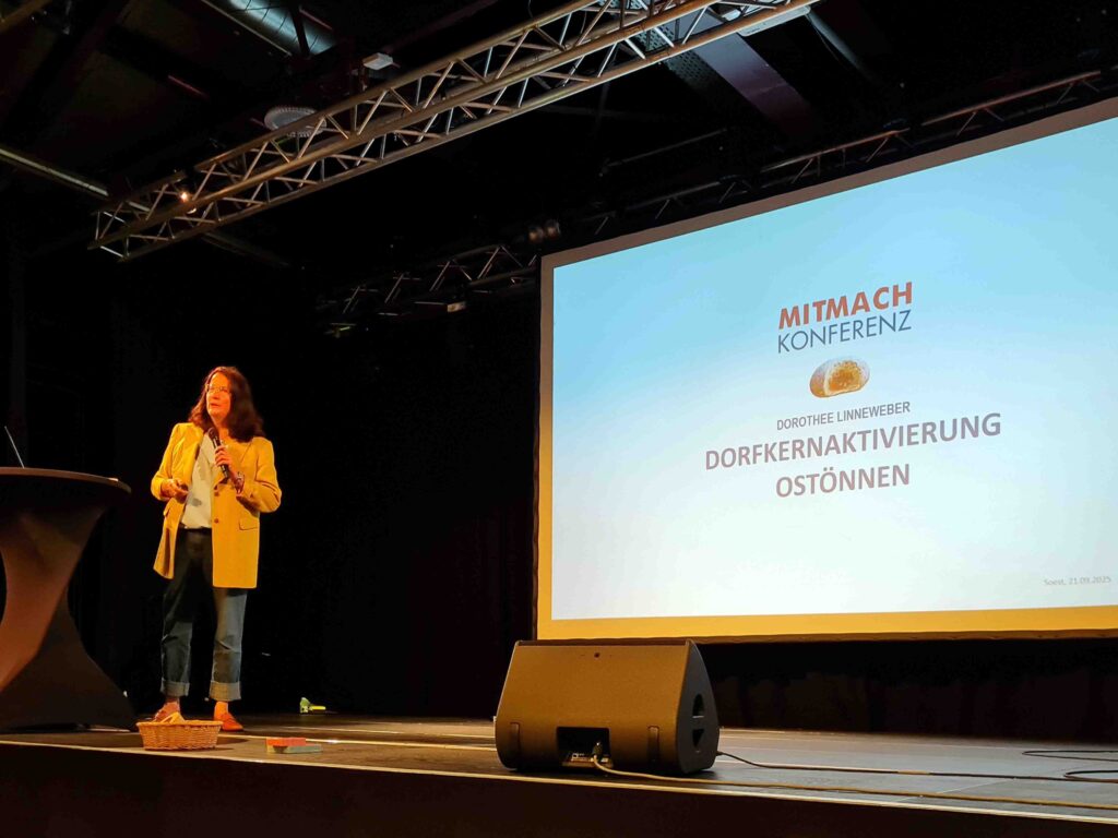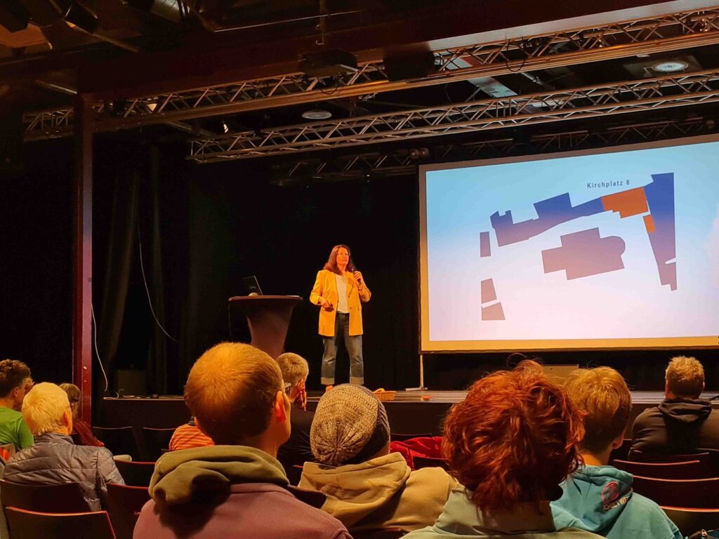 Es war ein höchst inspirierender Sonntag rund um die erste Soester Mitmach-Konferenz: nachdem bei ‚Earth-for-All‘-Bestseller-CoAutor Hans Haake der übergeordnete Kontext im Fokus stand, gingen wir ins Detail: anhand unseres lokalen Projektes ‚Dorfkernentwicklung Ostönnen‘ erläuterte Dorothee Linneweber im Rahmen ihres Vortrags die Donut-Krapfen-Theorie von städtischen und dörflichen Entwicklungen. Und berichtete anschaulich von Ideen und Hintergründen rund um das CoHousing-Projekt am Kirchplatz – mitten im Dorf, direkt an der romanischen St.-Andreas-Kirche.