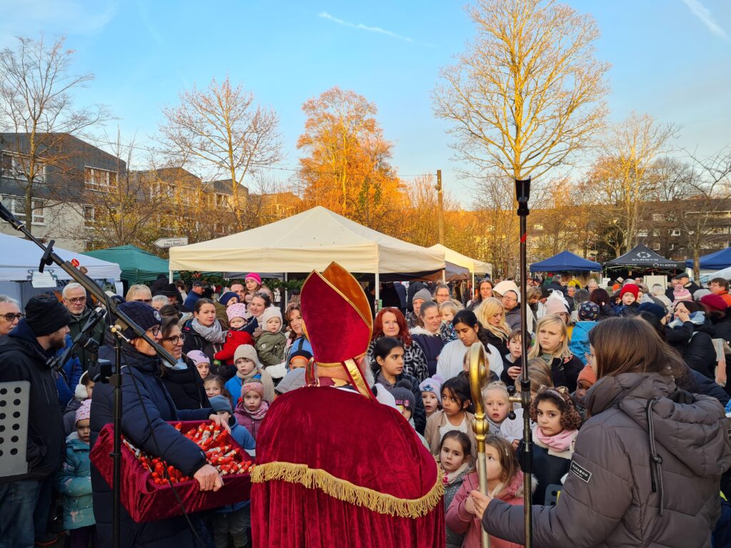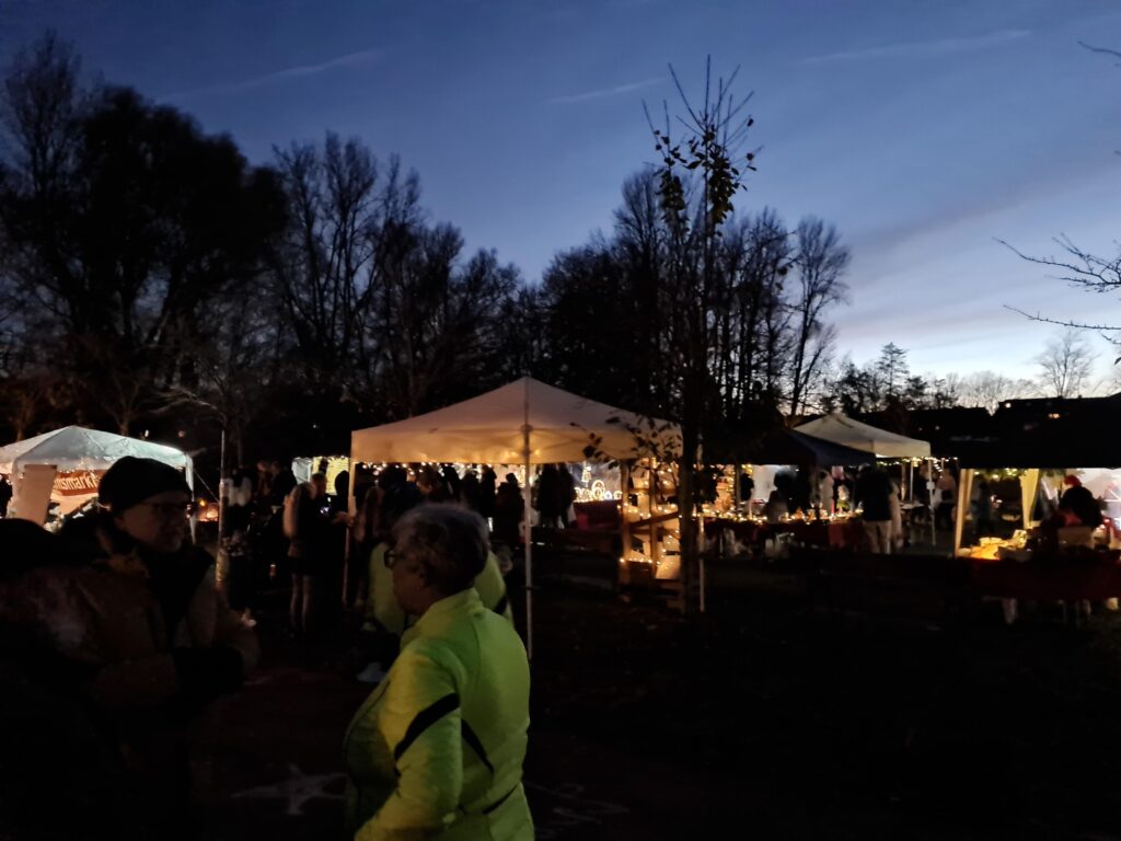 Insgesamt 17 Stände von nicht-kommerziellen Anbietern aus der direkten Umgebung, Glühwein-, Waffel- und Bratwurststände von örtlichen Vereinen, ein Besuch des Weihnachtsmanns, begleitet von Engelchen und lebendigen ‚Rentieren‘: mit etwa 600 Besuchern übertraf der Markt schließlich alle Erwartungen – und das trotz schlechten Wetters. Lob gab es dafür sogar vom Oberbürgermeister persönlich.